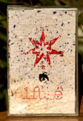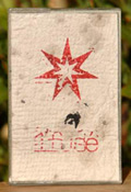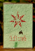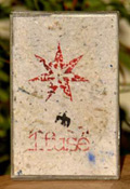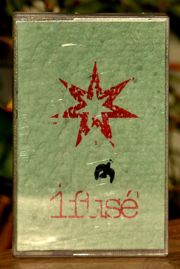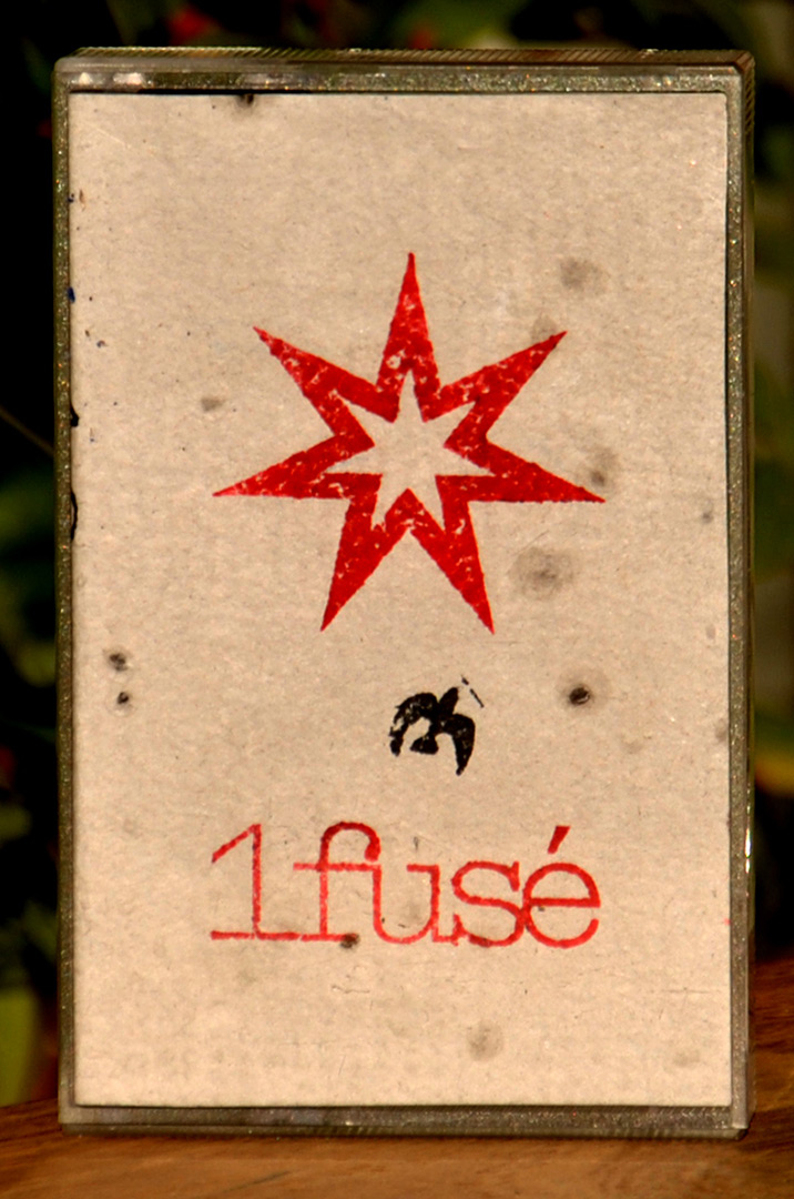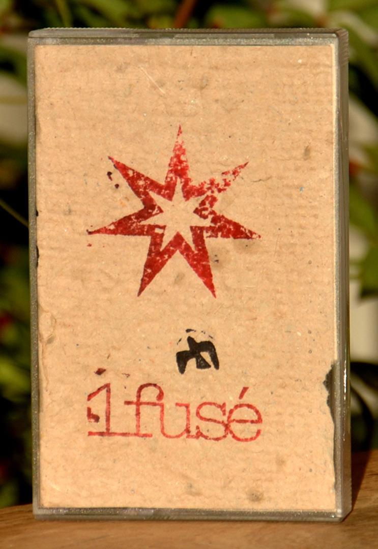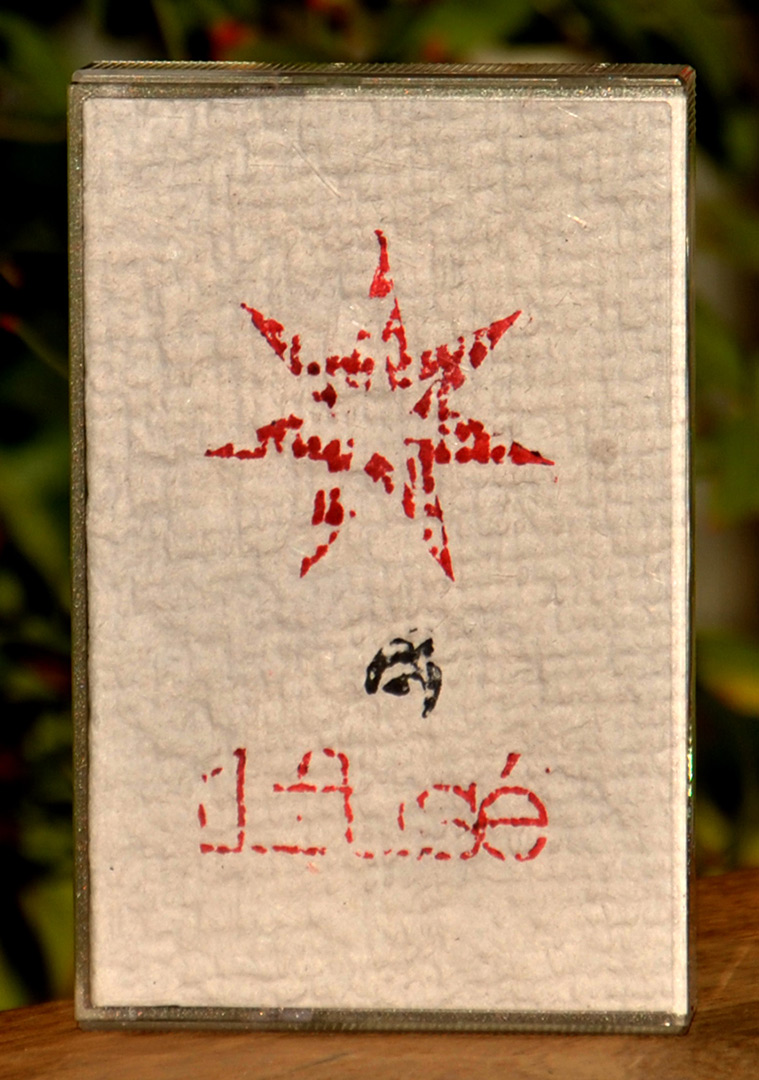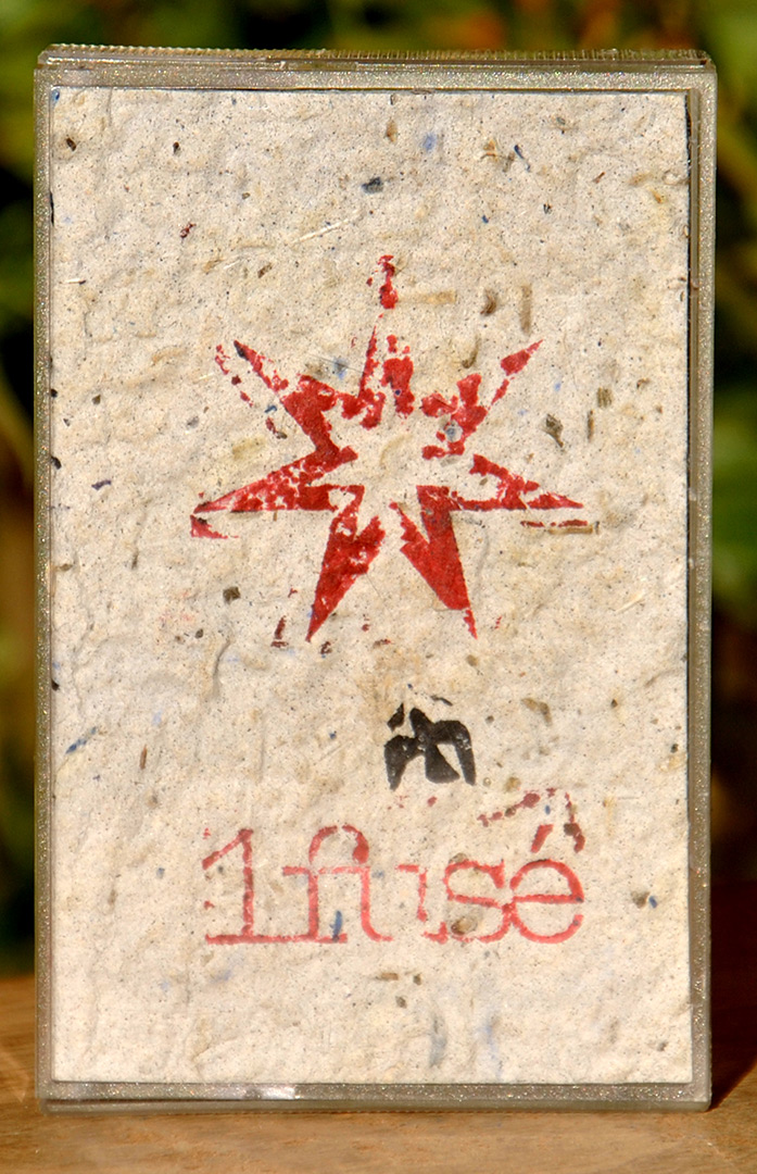 Pour les pochettes : papier fait maison avec incorporation de diverses graines et pigments, machine à écrire Olympus Studio 44, tampons, papier autocollant blanc (pour les etiquettes sur les cassettes).